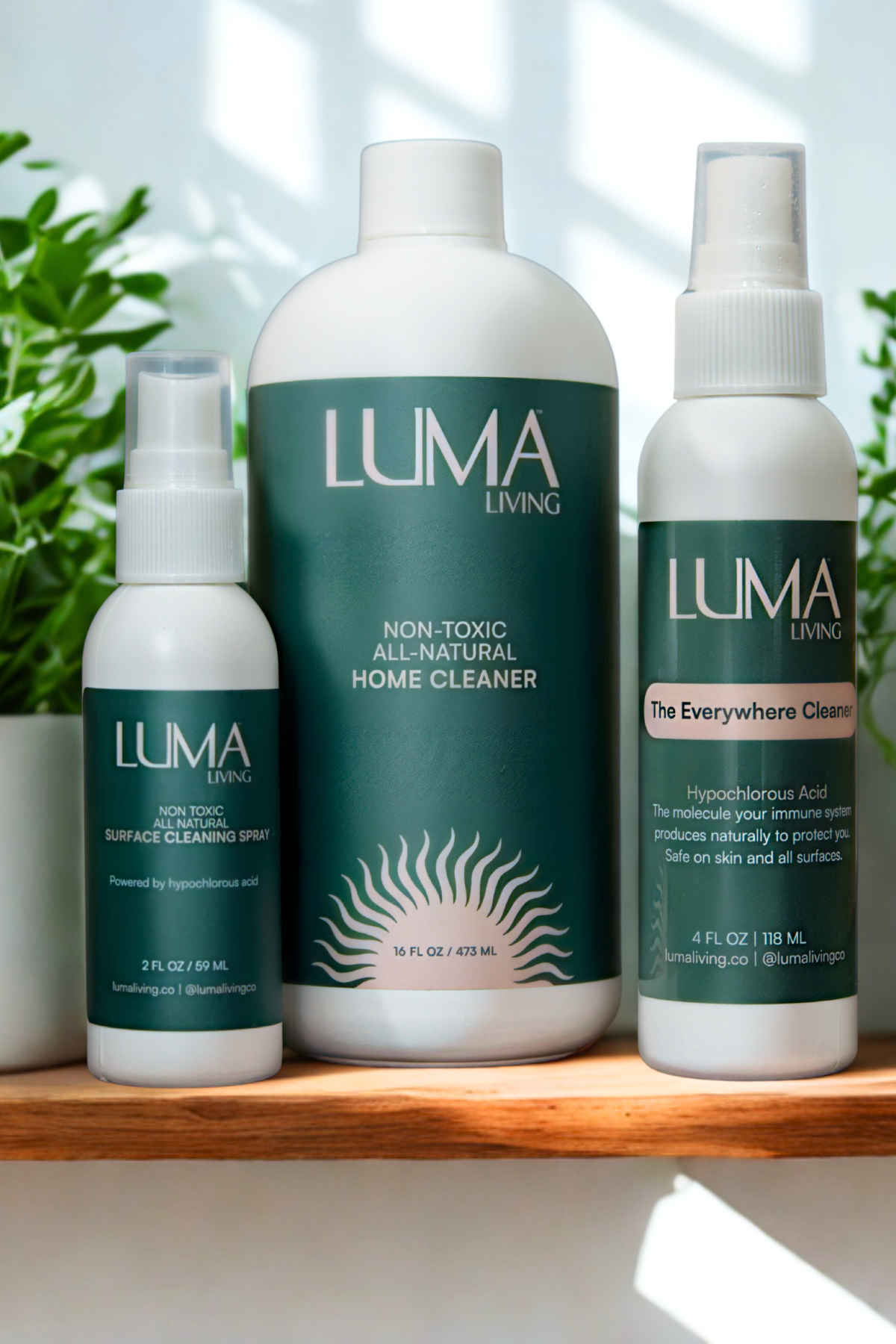 Water, salt, electricity. Your immune system makes hypochlorous acid to fight germs in your body. We just bottle it.
